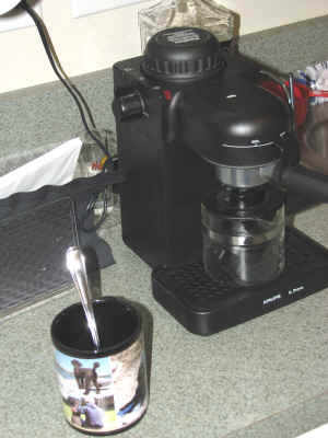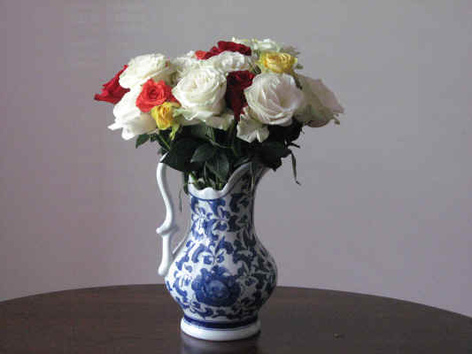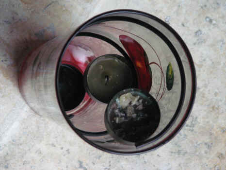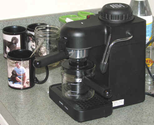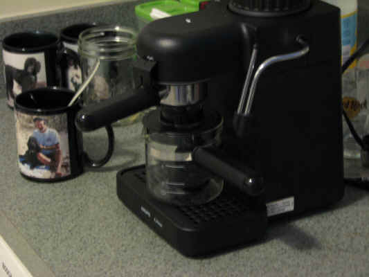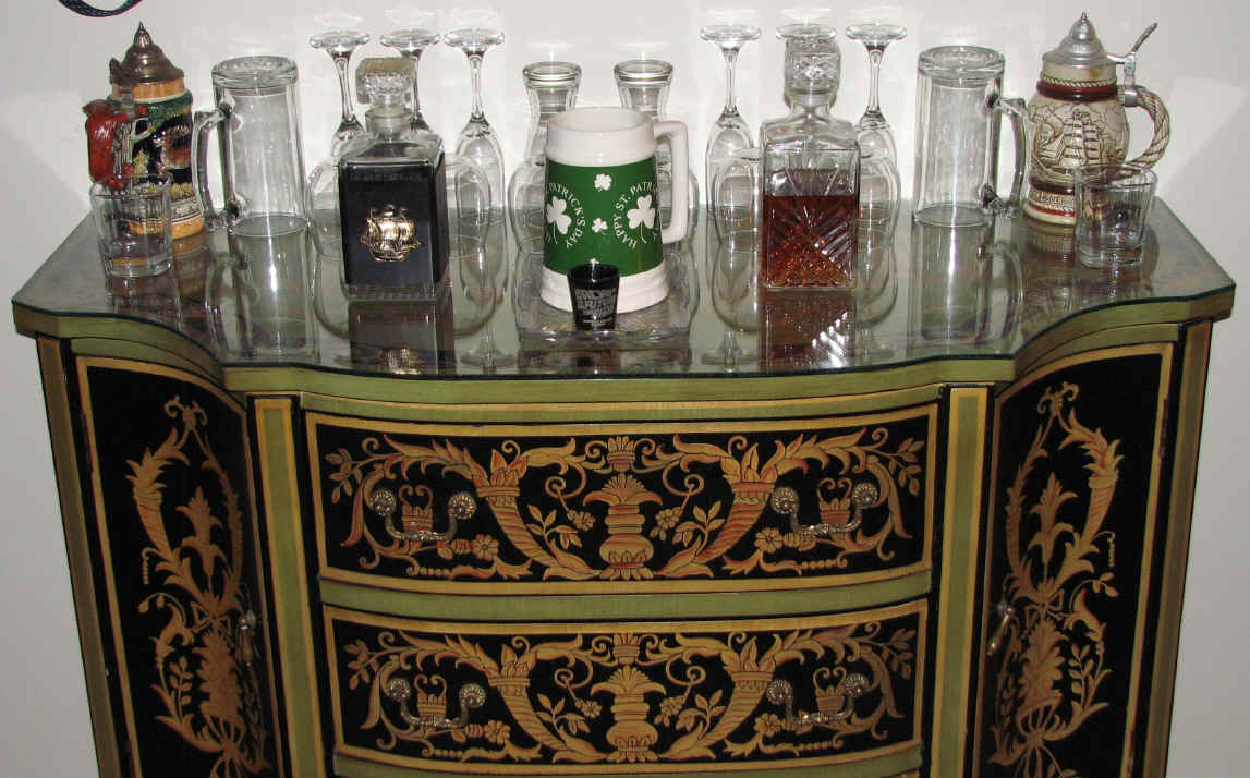 7-19-2014 Back again. GoodWill provided mugs, Decanter, rocking chair (outside), tee-shirts, and espresso machine. Earlier, also the speakers for the Karaoke machine, many pieces of the porcelain, and the steins. Juan of Modern Glass, the glass for buffet and coffee table. The dining table will be next week. Hope my patterns work out as well as before.