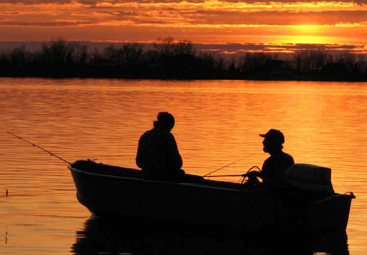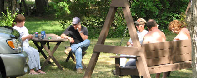 Uncle Don is here much of the summer. So far, in addition to Tunk (Don Jr) and Linda, Tunk's sons Jim and Jeff have been here a few times. Don's son Sparky (Less) w/wife Alice and dog Charger spent a good part of their vacation driving across country to visit. Don's youngest son Kenny brought his cousin Jim Campbell to show him our great fishing as well as beautiful sunsets.