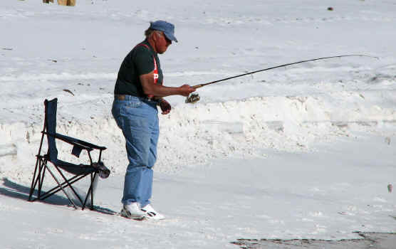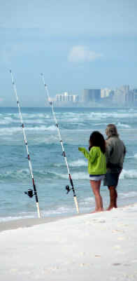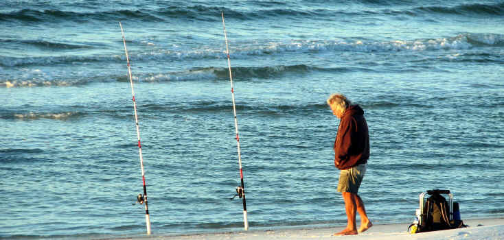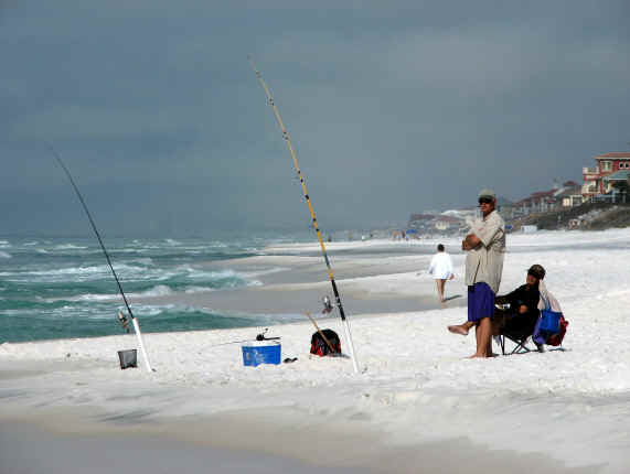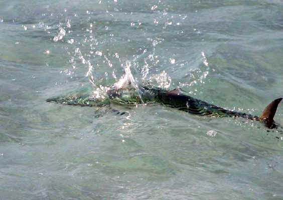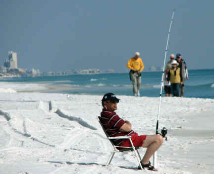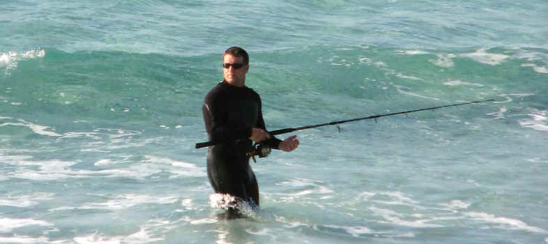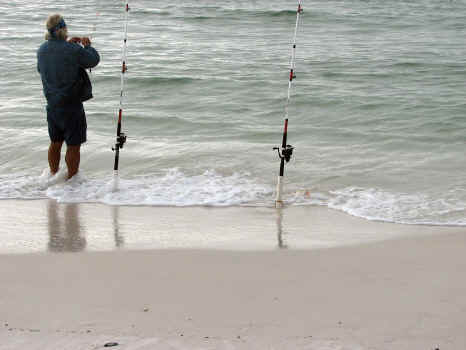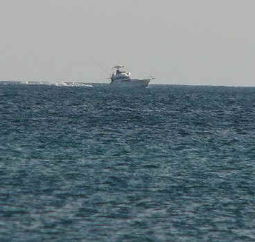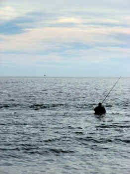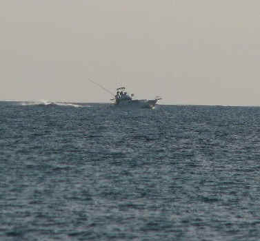 FL 2008-2009 FISHING At the beach at the bottom of our stairs, they have been catching Pompano, Reds and Bonita. One Hundred yards East of there, on my walk this morning, I saw large schools of Bonita within 10 feet of the shoreline. Note the boat on the horizon behind the fellow in the water. (I zoomed in on boat for picts below.) The Bonita was one by the shoreline