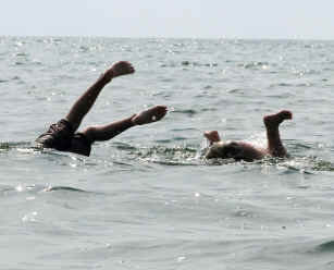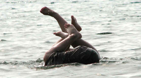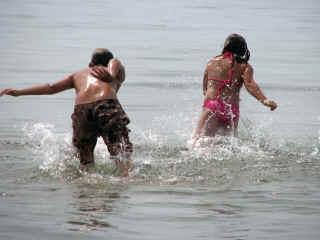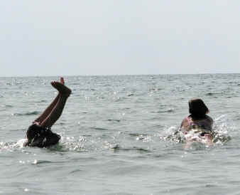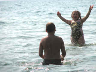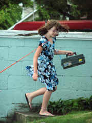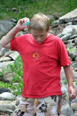 (We have to note than many a rock bass fell prey to a juicy crayfish on Jaz and Riley's hook.) Jaz and Riley attack the waters of Lake Ontario (At the Boater's Beach)
