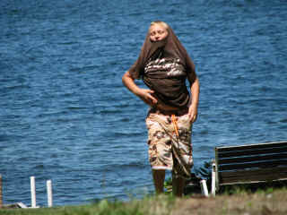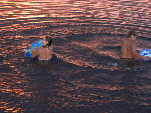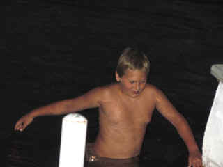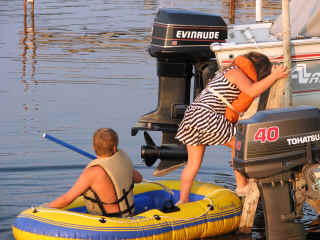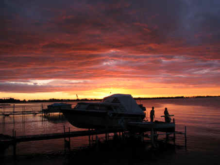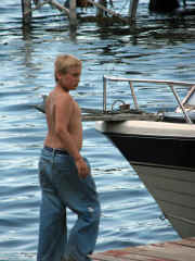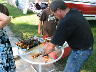 After more Boater's Beach (both sides), More fishing (At dock and in boat), a Couple of games, Two big scrap books (very well done), Some shopping, Speidies, TV and Computer, some quality reading, etc., etc.... Robin and Artie (w/Artie's daughter Debbie and step-daughter Jenny) arrived the following Saturday. We visited, we dropped in the big boat and went to the Boater's Beach once again. Artie treated us to Fresh Lobster stuffed w/Arties special shrimp and scallop stuffing. Sunday they all packed and piled into the truck. They left for NH....... It was a great week.