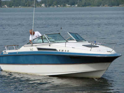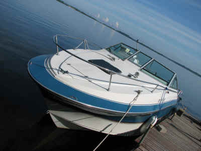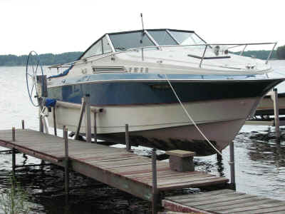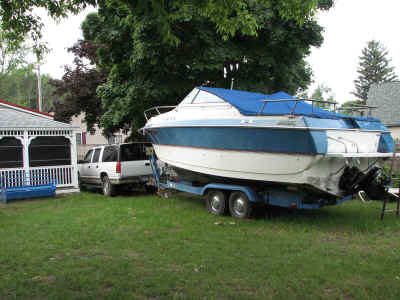 More picts next year It is "next year" 2008 The Larson has had a few problems. Some re-wiring, bad battery, flapper valves in engine allowed water into engine, (seized engine and had to remove and clean out) rebuilt electronic ignition, modified swim platform ladder to work, repaired deck hatches, repaired one water pump, rebuilt supports for new seat cushions, removed rusted marine battery charger, and rebuilt roller assembly and installed new tires on boat trailer. Also installed new cabin and courtesy lights and rear running light. Installed a windshield wiper. Installed new console cover and added adequate fuse block. Still to do: Modify Camper top, finish installation of Depth Sounder, install Trim Tabs, fix Marine Radio, add new bilge pump, and repair hoist (Has broken cables and dropped boat twice) MORE PICTURES