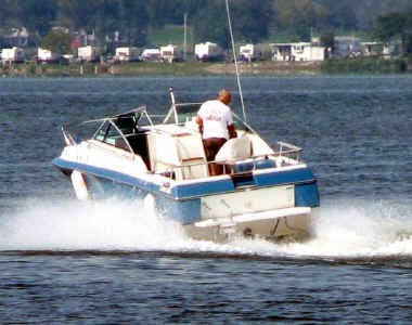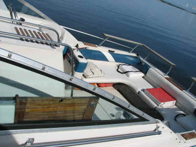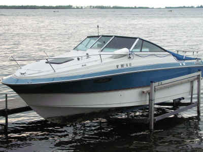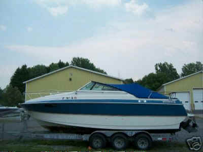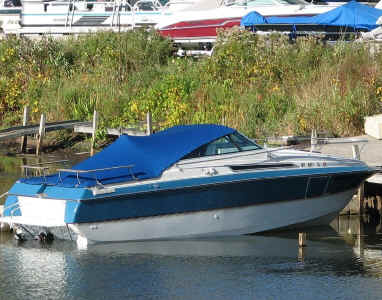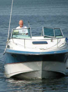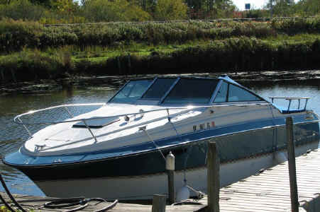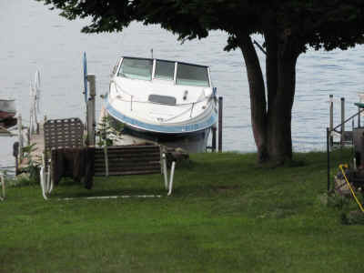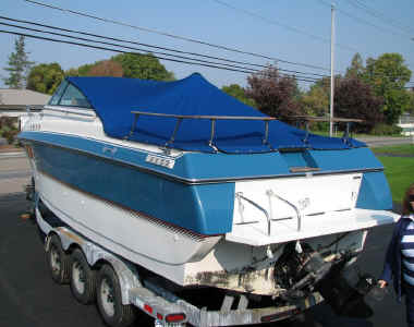 Then if we can revamp the hoist I have revised old canvas from Cruisers Inc to make a decent Bimini. Thanks to my brother and new custom sheaves, the hoist is working once again. I have decided not to add trim tabs at this time. images/2007/Larson/SportCruiser09.avi