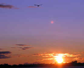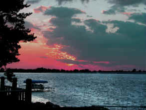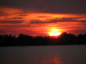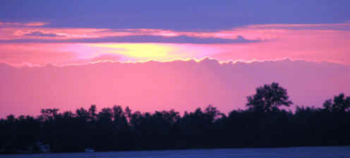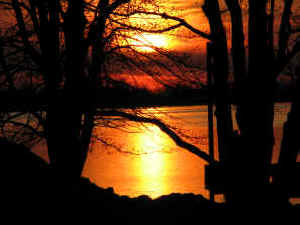 Sunsets 2007 I have been often asked to place new sunsets on this site. Here they are. These are taken randomly from over 100 saved in the last year. When I view them individually I think, " Wow, how great." When I place them together it seems to take away from their individual qualities. As you go through these, also note that some are there because of the subject matter and some for the sunset. The sunsets at Sandy Pond are often so beautiful, that pictures cannot capture all that the eye sees. As you view the following keep in mind two things. I do the best I can, and nothing can compare to being here. If they seem to get where each is just another sunset, pick one, go outside tonight and see how yours compare.