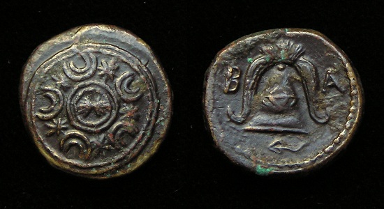 Macedonian Shield/Plummed Helmet Legend: "BA" for Basileus Alexandros, meaning "King Alexander"