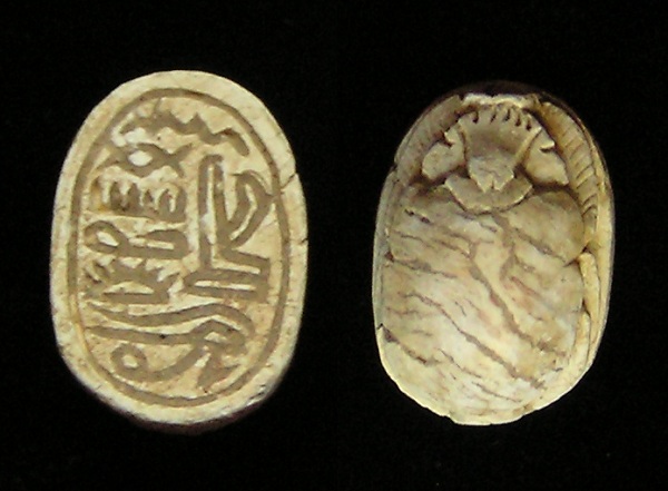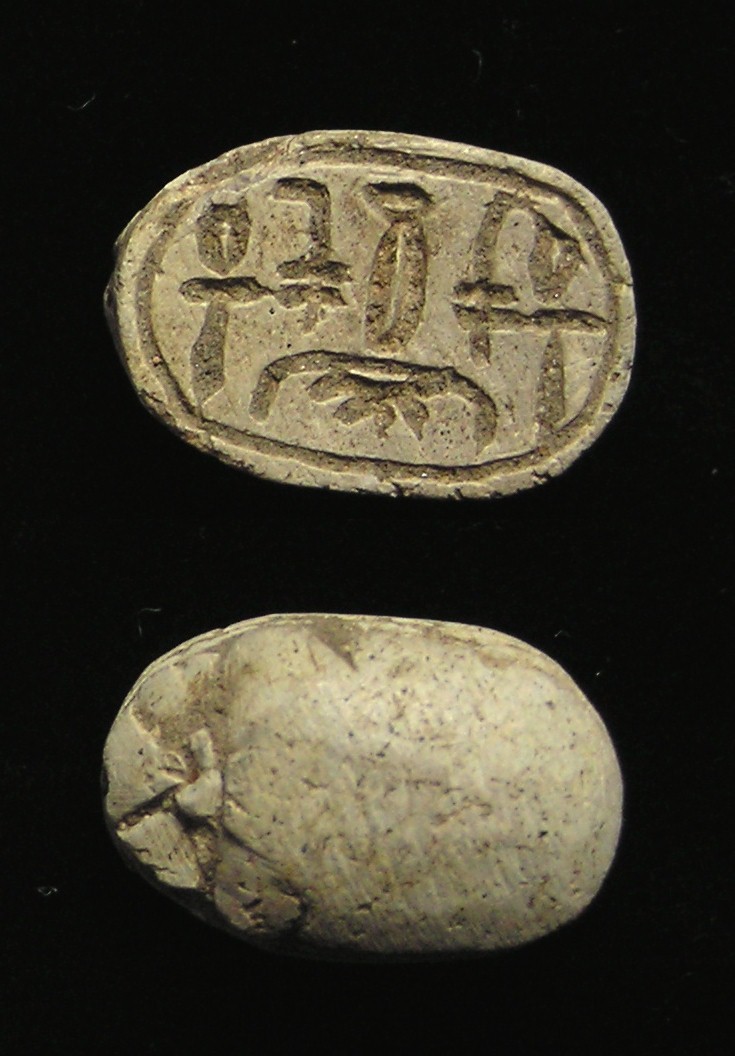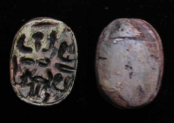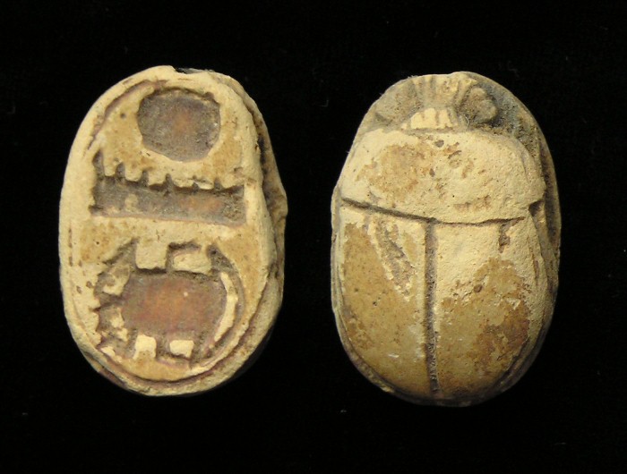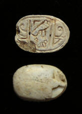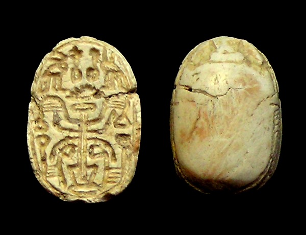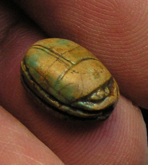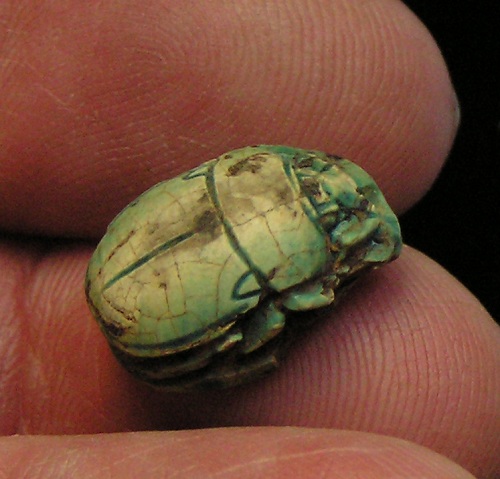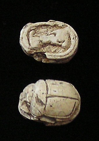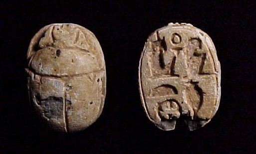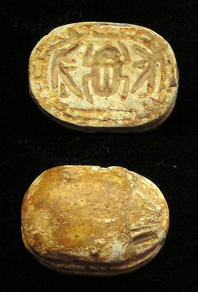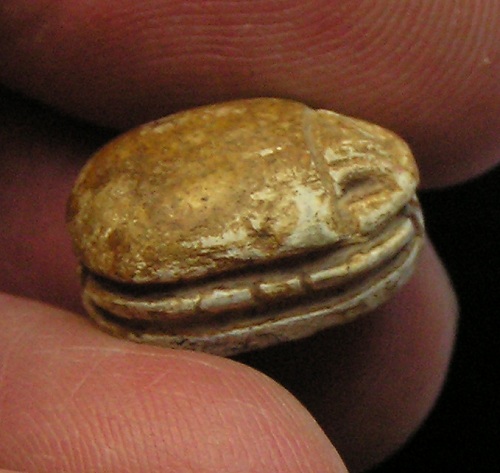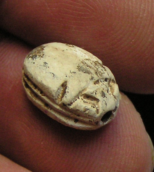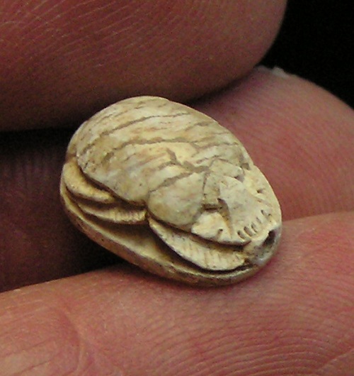 right (Bull head, Bear, Lion?) NOTE: This Scarab can be strung on a necklace, if desired. Size and Condition: This Scarab is about 15 mm (about 5/8 inch) long and it is mostly a soft light brown color BUY NOW $179 plus shipping