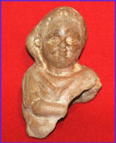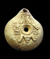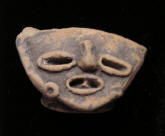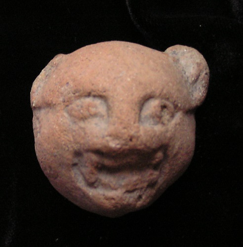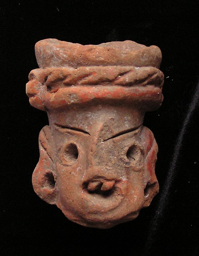 Nopilioa, 600-900 AD, Veracruz Statue fragment Classic Veracruz culture (or Gulf Coast Classic culture) refers to a cultural area in the north and central areas of the present-day Mexican state of Veracruz, a culture that existed from roughly 100 to 1000 CE, or during the Classic era.[1] El Tajin was the major center of Classic Veracruz culture; other notable settlements include Higueras, Zapotal, Cerro de las Mesas, Nopiloa, and Remojadas, the latter two important ceramics centers. The culture spanned the Gulf Coast between the Pánuco River on the north and the Papaloapan River on the south. Size: 1 7/8-inch across Condition: Excellent condition, with good mineral deposits, Stable NOTE: A group MesoAmerican antiquities recently aquired were mounted in a shadow box. Substantial residual glue (resin or silicome adhesive) used in the mounting is on the back of this piece. BUY NOW $149 plus shipping |