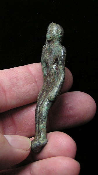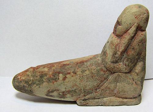 Phallic Figure - New Kingdom, 1600 to 30 BC TOP Quality and VERY RARE !!! Historical Context: Bes was the dwarf god with a very large phallus. Dwarfs had always been associated with fertility and sex in Egypt. Some festivals were known to feature phallic symbols, from early New Kingdom through the Ptolemaic era. Bes was considered a protector of women and children and and some women would tatoo Bes on their thigh. Bes is celebrated in physical sex and rooms came to be known as "Bes Chambers." Attribution/Description: Date: