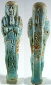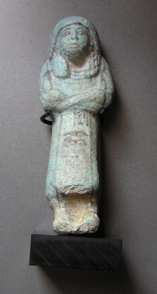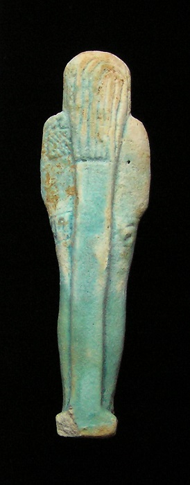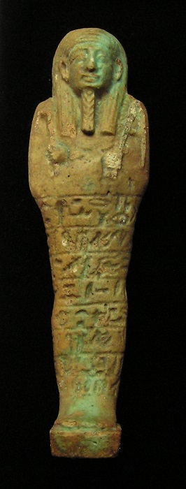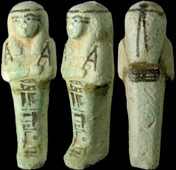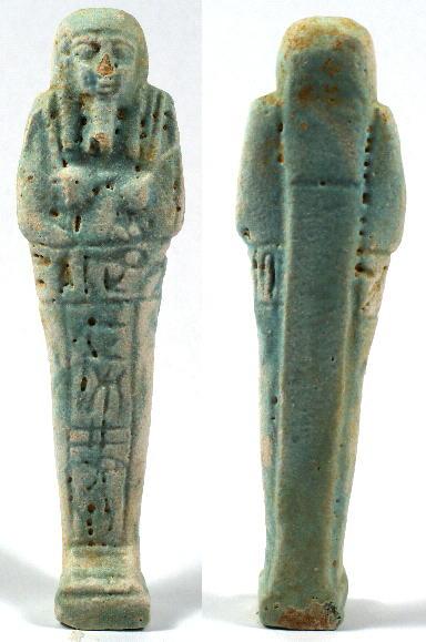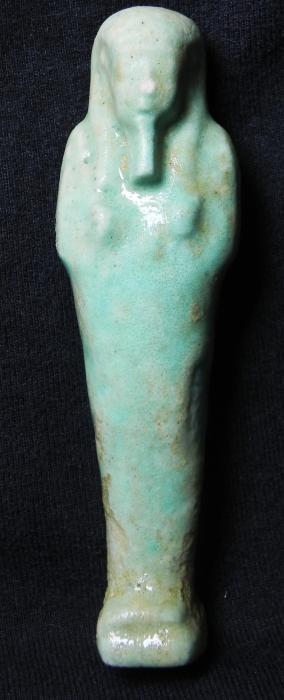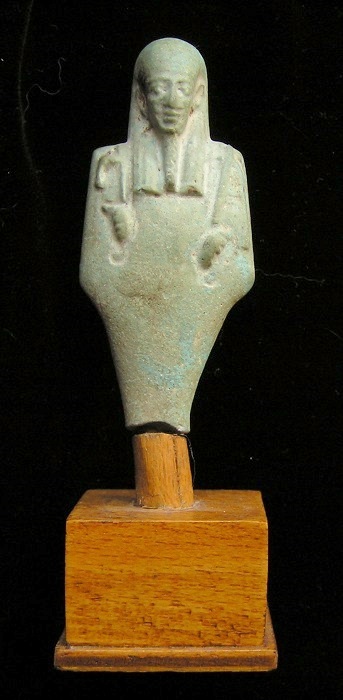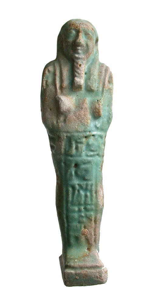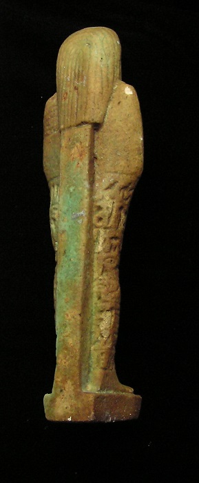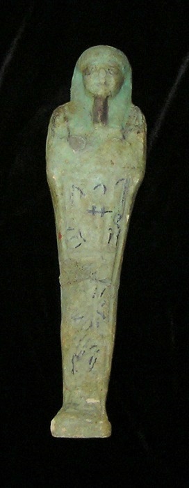 EGYPTIAN TOMB Ushabti - 664 to 525 BC, XXVI Dynasty Hieroglyphs around top and down front HIGH QUALITY !! Historical Context: See above. Hieroglyphs Translation: "He who is enlightened, Ka, if one counts, you shall say 'here I am'" Attribution/Description: Date: