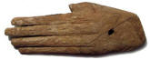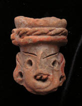 Nopilioa, 600-900 AD, Veracruz Statue fragment Classic Veracruz culture (or Gulf Coast Classic culture) refers to a cultural area in the north and central areas of the present-day Mexican state of Veracruz, a culture that existed from roughly 100 to 1000 CE, or during the Classic era.[1] El Tajin was the major center of Classic Veracruz culture; other notable settlements include Higueras, Zapotal, Cerro de las Mesas, Nopiloa, and Remojadas, the latter two important ceramics centers. The culture spanned the Gulf Coast between the Pánuco River on the north and the Papaloapan River on the south. Size: 1 7/8-inch tall Condition: Excellent condition, with good mineral deposits, Stable NOTE: A group MesoAmerican antiquities recently aquired were mounted in a shadow box. Substantial residual glue and wooden mounting block is on the back of this piece. BUY NOW $99.95 plus shipping |