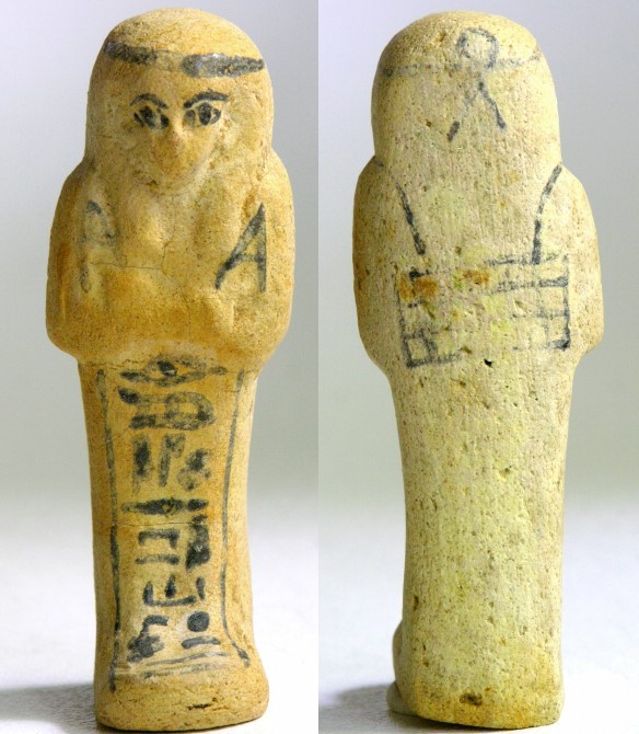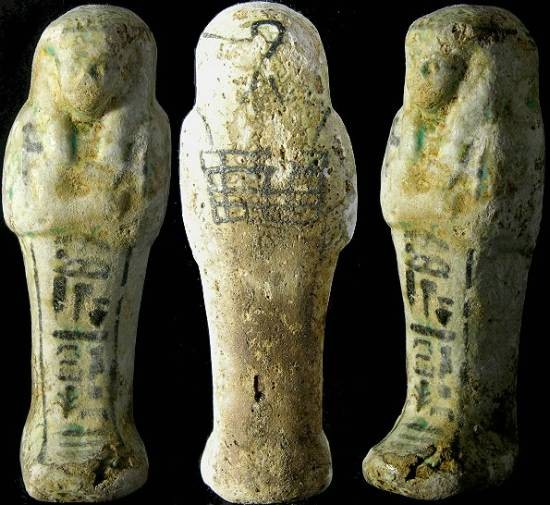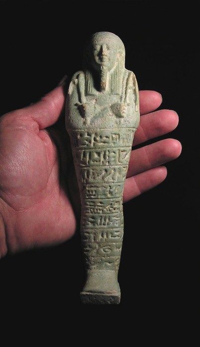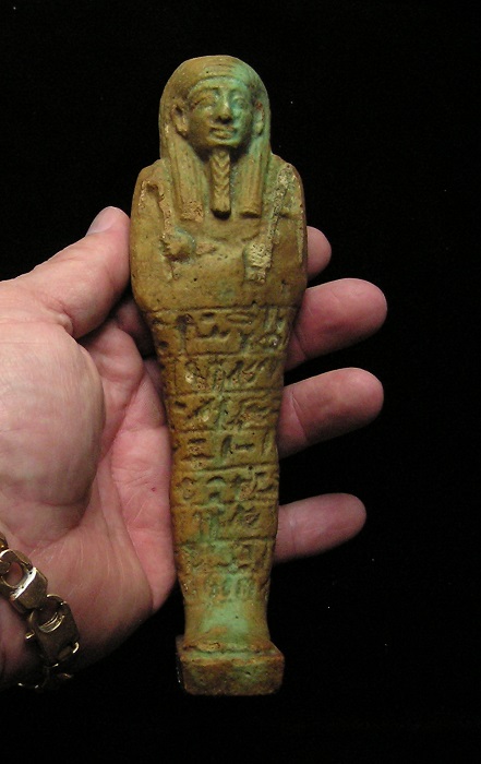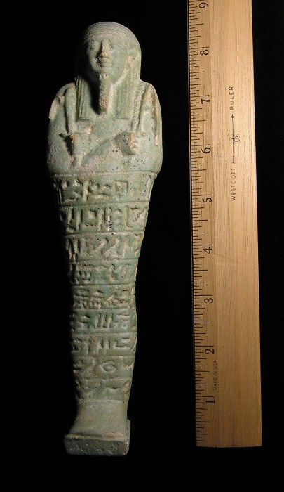 EGYPTIAN TOMB Ushabti - 664 to 525 BC, XXVI Dynasty Hieroglyphs down front and around back Much LARGER than most Ushabtis available !!!