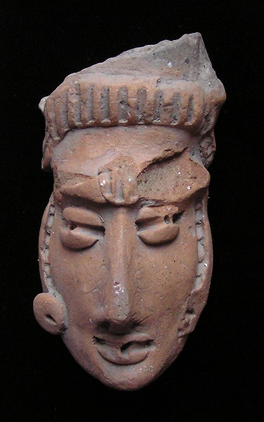 Nopilioa, 100-600 AD, Veracruz Statue face fragment - Medium Large Size Classic Veracruz culture (or Gulf Coast Classic culture) refers to a cultural area in the north and central areas of the present-day Mexican state of Veracruz, a culture that existed from roughly 100 to 1000 CE, or during the Classic era.[1] El Tajin was the major center of Classic Veracruz culture; other notable settlements include Higueras, Zapotal, Cerro de las Mesas, Nopiloa, and Remojadas, the latter two important ceramics centers. The culture spanned the Gulf Coast between the Pánuco River on the north and the Papaloapan River on the south. Size: 2 3/4-inch tall Condition: Excellent condition, with good mineral deposits, Stable NOTE: A group MesoAmerican antiquities recently aquired were mounted in a shadow box. Substantial residual glue (resin or silicome adhesive) used in the mounting is on the back of this piece. BUY NOW $189 plus shipping |