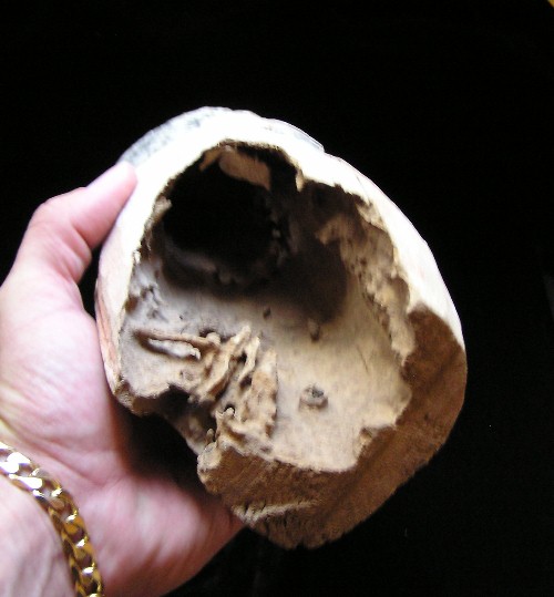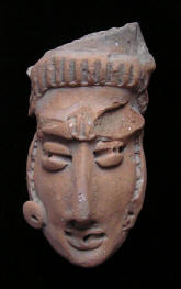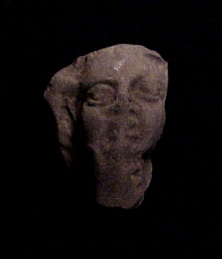 Statue face fragment - LARGE Fragment Size: 4-1/2-inch tall Condition: Excellent condition, with good mineral deposits, Stable NOTE: A group MesoAmerican antiquities recently aquired were mounted in a shadow box. Substantial residual glue (resin or silicome adhesive) used in the mounting is on the back of this piece. BUY NOW $249 plus shipping Photo of back |