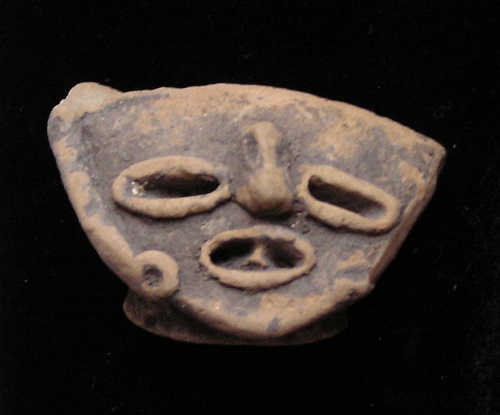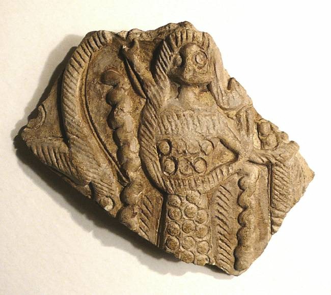 MIDDLE BABYLONIAN PERIOD #9969: Clay Fragment 1500 to 1100 BC Ref: Artemis-like figure Historical Context: See above Attribution: Clay Vessel Fragment, 1500 to 1100 BC