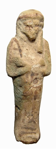 #10790: EGYPTIAN TOMB Ushabti - 664 to 525 BC, XXVI Dynasty Hieroglyphs down front LARGER than most Ushabtis available Historical Context: See above Attribution/Description: Date: