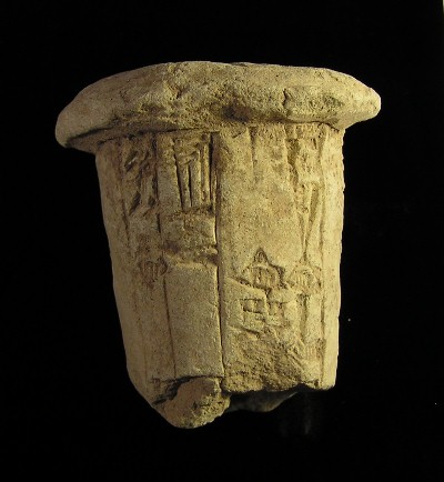 #8613: Cuneiform Foundation Cone Historical Context: See above "Historical Context" for cuneiform tablets. Foundation cones were buried at the corner stone of a building and was typically inscribed with a prayer. Attribution: Cuneiform Foundation Cone, 2000 to 1300 BC