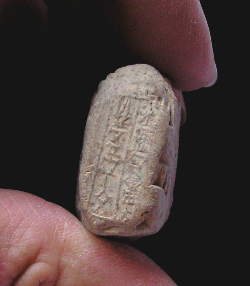 ANCIENT BABYLONIA #10653: Cuneiform Tablet 2,150 to 2,000 BC (Ur III Period) Administrative Record: Grain Inventory Historical Context: This cuneiform tablet was manufactured about 2000 to 1300 BC in Ancient Babylonia, region east of current day Lebanon. In the late fourth and third milleniums B.C. a people called the Sumerians began to develop a writing system called "cuneiform" ("wedge-shaped"), written on wet clay with a sharpened stick, or stylus. At first the Sumerians used a series of pictures ("pictograms") to record information having to do with business and administration, but went on to develop a system of symbols that stood for ideas and later sounds (usually syllables). In the later stages of Sumerian writing there were about 600 signs that were used on a regular basis. The language that the Sumerians used is not related to any other language we know about, and it gradually ceased to be a spoken language. The writing system, however, was adopted by people speaking a Semitic language called Akkadian, and continued to be used by a number of peoples up until the 1st century BC. Both the Babylonians and Assyrians, who spoke dialects of Akkadian, used the cuneiform signs, writing not only in their own languages, but sometimes in Sumerian as well. Sumerian had become the language of literature and scholarship, somewhat like Latin up until fairly recently. Most cuneiform tablets are business related documents.