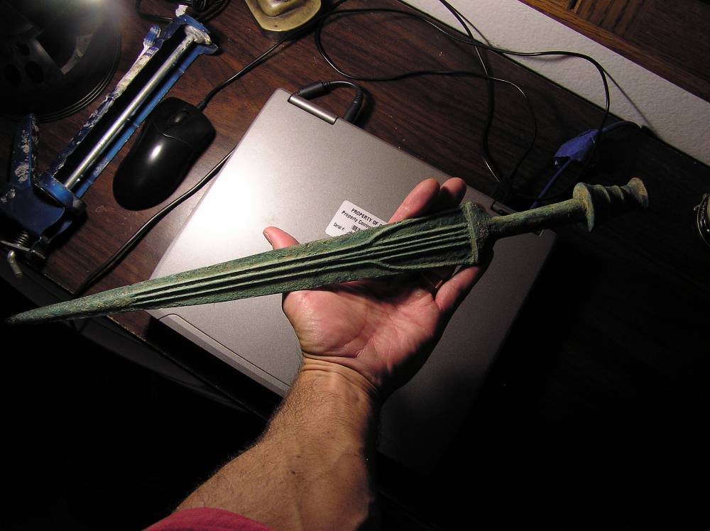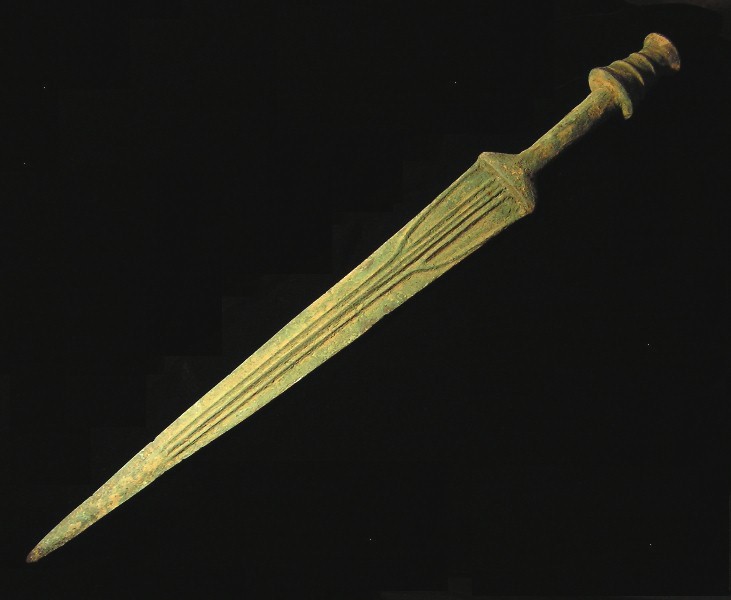 Mesopotamia) Duck-eyed on curves of hilt at attachment to blade (See close-up picture) Molded grip with Four Men Arm-to-Arm (See close-up picture)