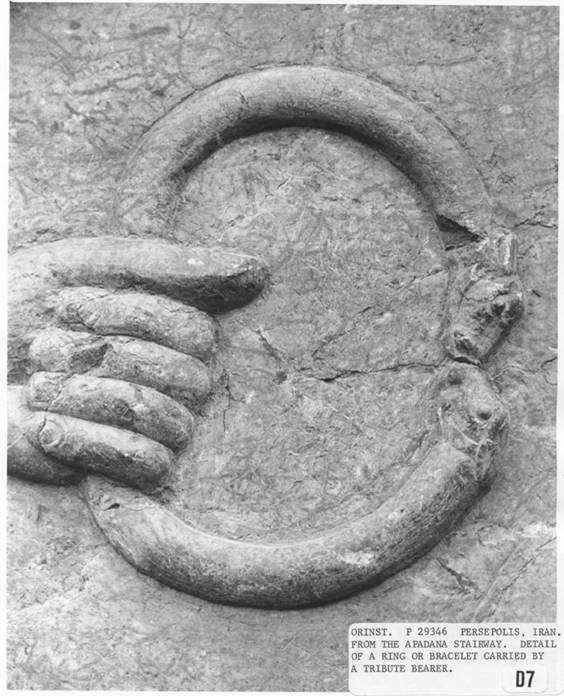 Torques on CD to illustrate size Close up of repair to one torque Pictue of Ancient Relief in Apadana Iran (5th Century BC) showing torque being held by Torque Bearer