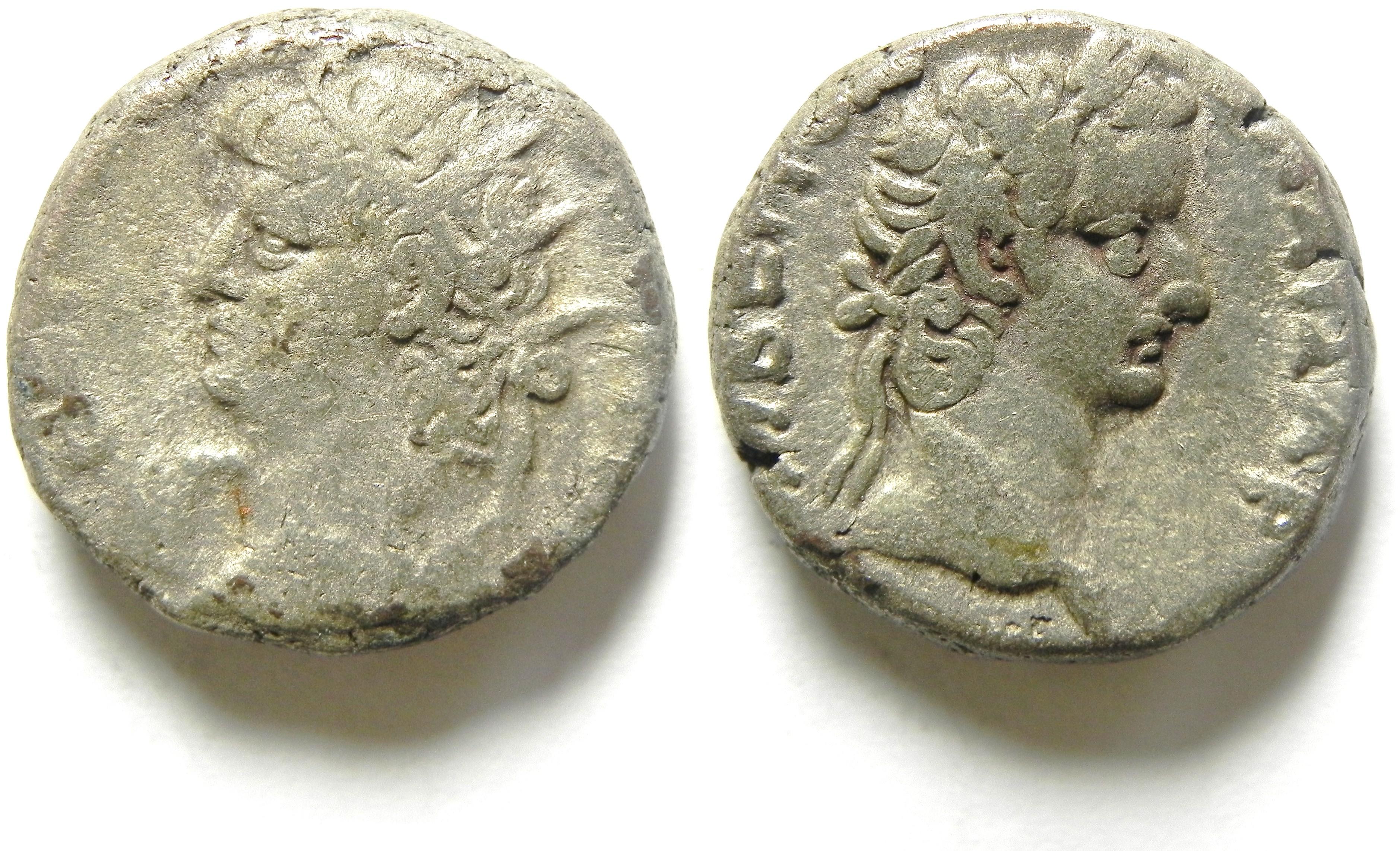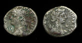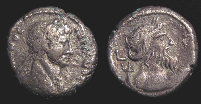 Tetradrachm – 150 AD, Antoninus Pius !! Historical Context: These coins were minted by the ROMAN EMPIRE during the reign of ANTONINUS PIUS (138 - 161 AD). Antoninius Pius was a senator. He was adopted by Hadrian as his heir in 138 and his succession was smooth. The history of his reign is minimal owing to the tranquility and prosperity which Roman world enjoyed under the patient, judicious and impartial rule. It is said that he instructed his artists to show him with a "thoughtful" portrait so the people of Rome would feel comfortable with him. Based on the portraits on his coins, they hit their mark. He also adopted Marcus Aurelius as his successor. They are known as the adoptive emperors. This was the Golden Era of Rome. Attribution: Silver/Billion Tetradrachm, Roman Egypt, Reign of Antoninus Pius, 138 to 161 AD: The obverse (front) of this coin is Antoninus Pius !!! The reverse scene is Sarapis, an Egyptian God. This coin is in "almost Very Fine" condition, with some corrosion spots. This coin is unaltered with deep hoard toning. This coin is a SILVER (Billion) Tetradrachm measuring about 24 mm diameter (about the size of a US Quarter but 2 to 3 times as thick). SOLD $49.95 plus shipping