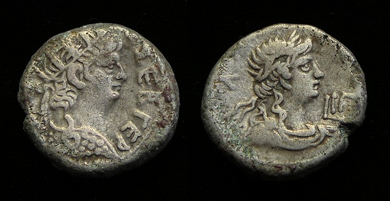 #10892: ROMAN EGYPT - NERO - 60 AD, Historical Context: This coin was minted by the ROMAN EMPIRE in EGYPT during the reign of NERO, 54-68 AD. He was the son of Agrippina Junior, Clausius’ niece and later adopted by Claudius. Nero rose the throne when Claudius died in 54, poisoned by orders of Agrippina. (Nero’s mother). He is usually credited with starting the great fire of Rome in 64 AD. He subsequently blamed the Christians for the fire, subjecting 1,000’s of them to public execution. His power was broken by a revolt in Gaul and he committed suicide. Attribution: Roman