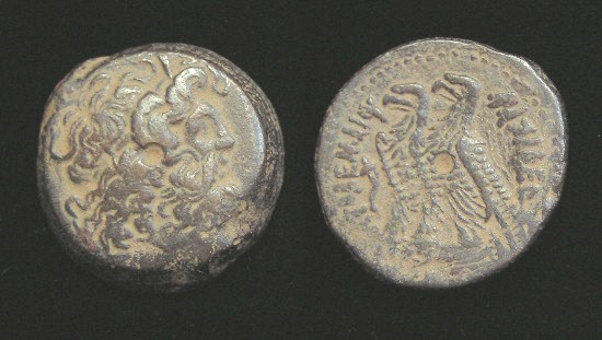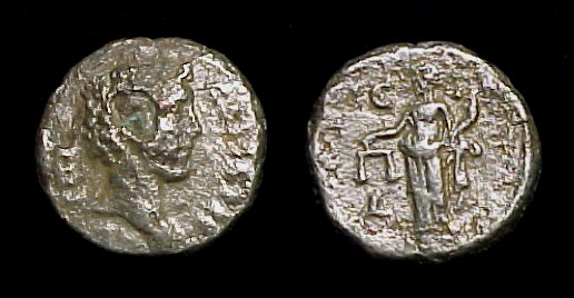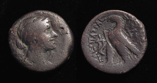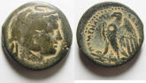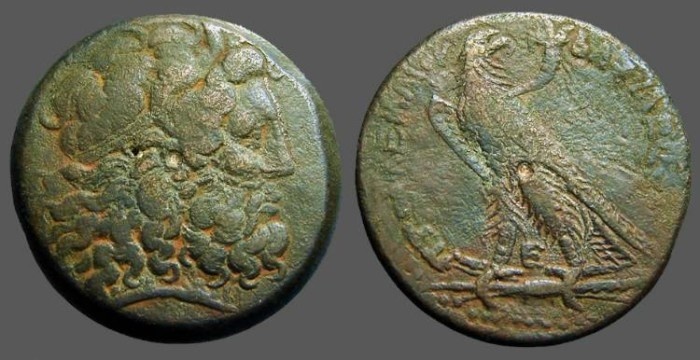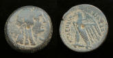 #11499: EGYPTIAN Bronze COIN - 160 BC, Historical Context: Same as above Obverse: ZEUS AMMON, a combination of Greek and Egyptian
