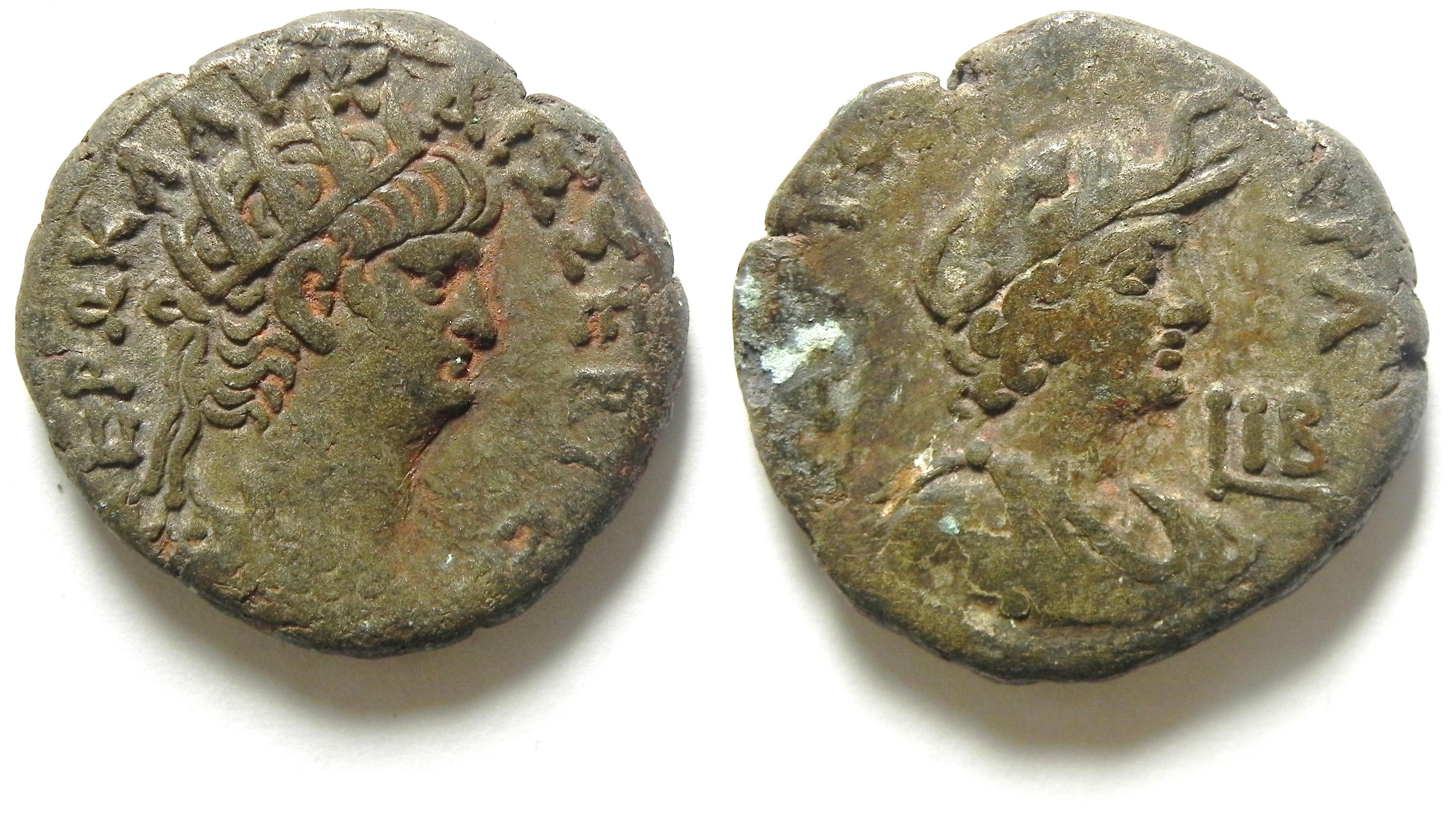 #11793: EGYPTIAN Bronze Drachm – 130 AD, HADRIAN !! Medallic-like Historical Context: See above "Historical Context". Obverse: Roman Emperor Hadrian SOLD $149 plus shipping