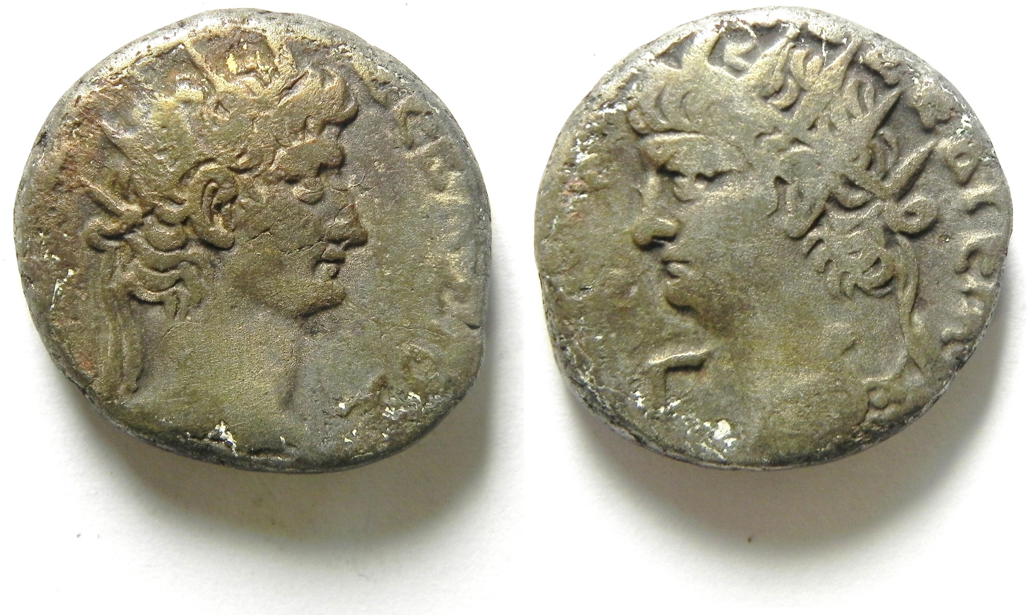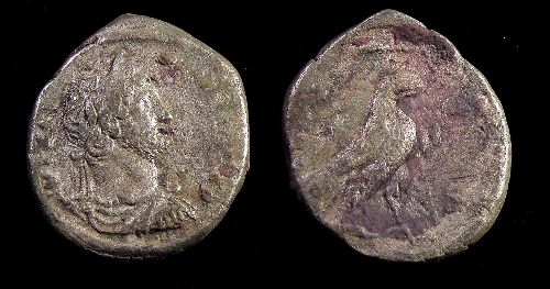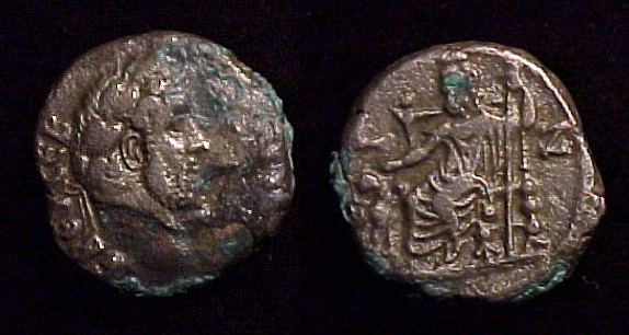 Tetradrachm – 130 AD, HADRIAN !! Historical Context: See above "Historical Context". Obverse: Roman Emperor Hadrian Special Note: The specific gravity of this coin is well below normal indicating that significant metal content has been leached from the coin. The coin is likely more brittle then typical for this issue. SOLD $34.95 plus shipping