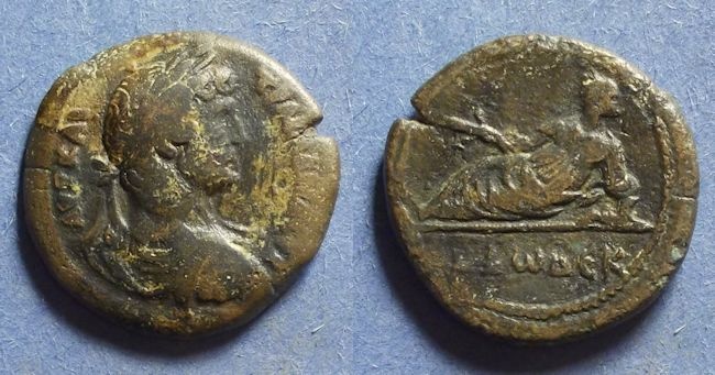 #11794: EGYPTIAN Bronze Drachm – 130 AD, HADRIAN !! Historical Context: See above "Historical Context". Obverse: Roman Emperor Hadrian SOLD $129 plus shipping