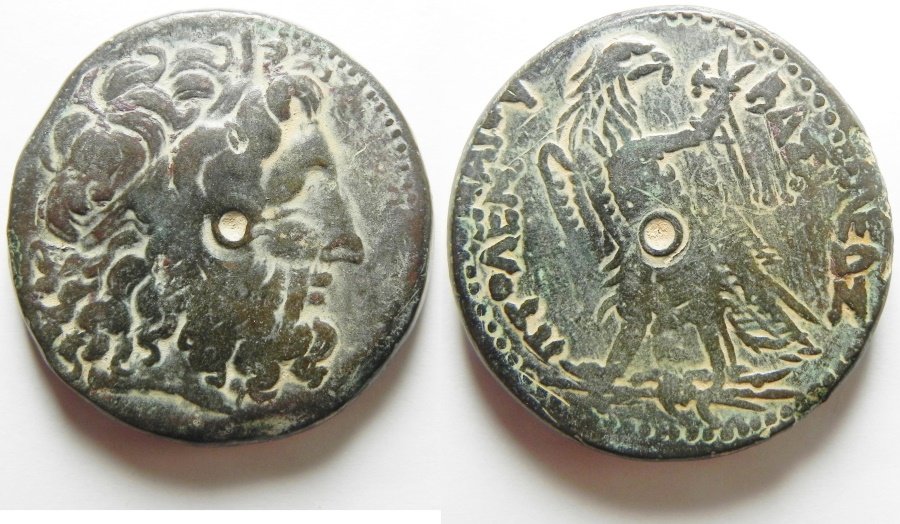 #10136: EGYPTIAN Bronze COIN - 230 BC, BIG, MEATY, and PRETTY COIN Obverse: ZEUS AMMON, a combination of Greek and Egyptian