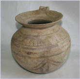 Oinochoe Bucchero - Decorated with Nike and Palm!! Sharp Piece !! Historical Context: This Oinochoe Bucchero (Vase) is typical of pottery produced in Magna Graecia and the Mediterranean area about 350 to 300 BC. This is the era of Philip II (Father of Alexander the Great) and Alexander the Great which lead to a unique period of unification of the Mediterranean and Persian worlds. The Nike is seated on rocks holding a wreath. Nike's hair is pulled to back and decorated. She is wearing a full length dress.. Nike represents victory, typically over an enemy state.