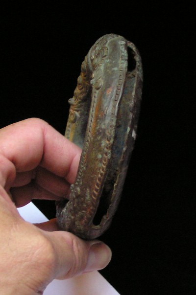 #8784: Bactrian Greek Torque - 4th to 2nd Centuries BC, Charming !! Historical Context: Bactria, which may have formed part of the Median Empire, was subjugated by Cyrus the Great. However, after Darius III of Persia had been defeated by Alexander the Great (about 340 BC) and killed in the ensuing chaos, Alexander marched onto Bactria and Bactria became a province of the Macedonian empire. After Alexander's death they came under the rule of Seleukus, an ex-General of Alexander and a Hellenistic Greek King. This piece has outstanding ornamental features, highly detailed and in excellent condition.