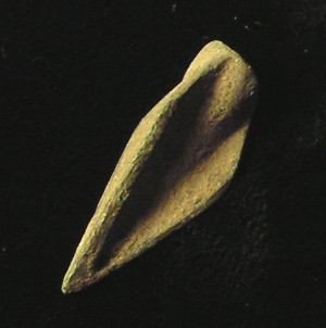 #7762: GREEK Arrowhead - 350 to 250 BC, Type developed by Alexander the Great and his Father (Philip II) Historical Context: The Macedonian empire was founded by Alexander I but carried forward by others including Philip II (Father of Alexander the Great) and Alexander the Great. Philip II developed the army and tactics that enabled Alexander to accomplish his victories. Alexander the Great is considered the greatest military general ever. This arrowhead is BRONZE and measures about 35 mm (1 3/8 inches) long. SOLD $69.95 plus shipping