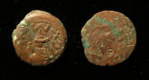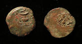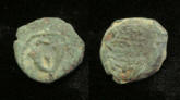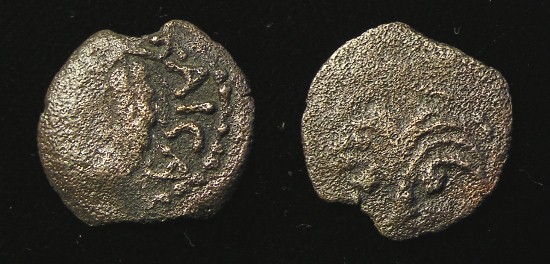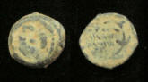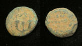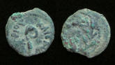 #8432: JEWISH Bronze - 100 BC, WIDOW'S MITE !! of BIBLE FAME !! Historical Context: See above "Historical Context" Obv: Spoke Wheel, Legend around inside