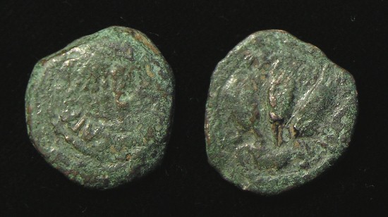 - 100 BC, WIDOW'S MITE !! of BIBLE FAME !! **DOUBLE CORNUCOPIA-TYPE** Historical Context: See above "Historical Context" Attribution: Judea, 100 BC BUY NOW $29.95 plus shipping