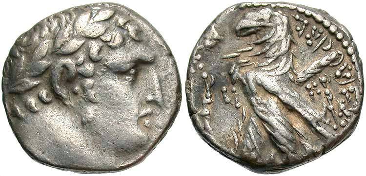#10180: SHEKEL of TYRE - 24-25 AD Minted Late Adult Lifetime of Christ (about age 28-30) Highly Desirable and Collectable Historical Context: This coin was minted in the Holyland during the 1st Century BC and was used to pay the "Temple Tax." Tyre was an independent Phoenician coastal city. Tyre won it's independence in 126 BC and prospered as a port city. Each year Jewish law required that each male resident was required to pay a temple tax after 126 BC in the form of these coins. These coins were the most common and desirable silver coins in Phoenicia during the period that Judas betrayed Christ. Obv: Melqart, same as Roman Hercules Ex-Wayne Sayles SOLD $749 plus shipping