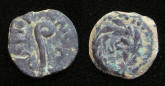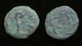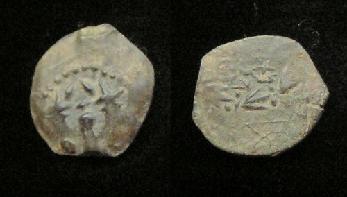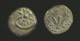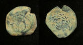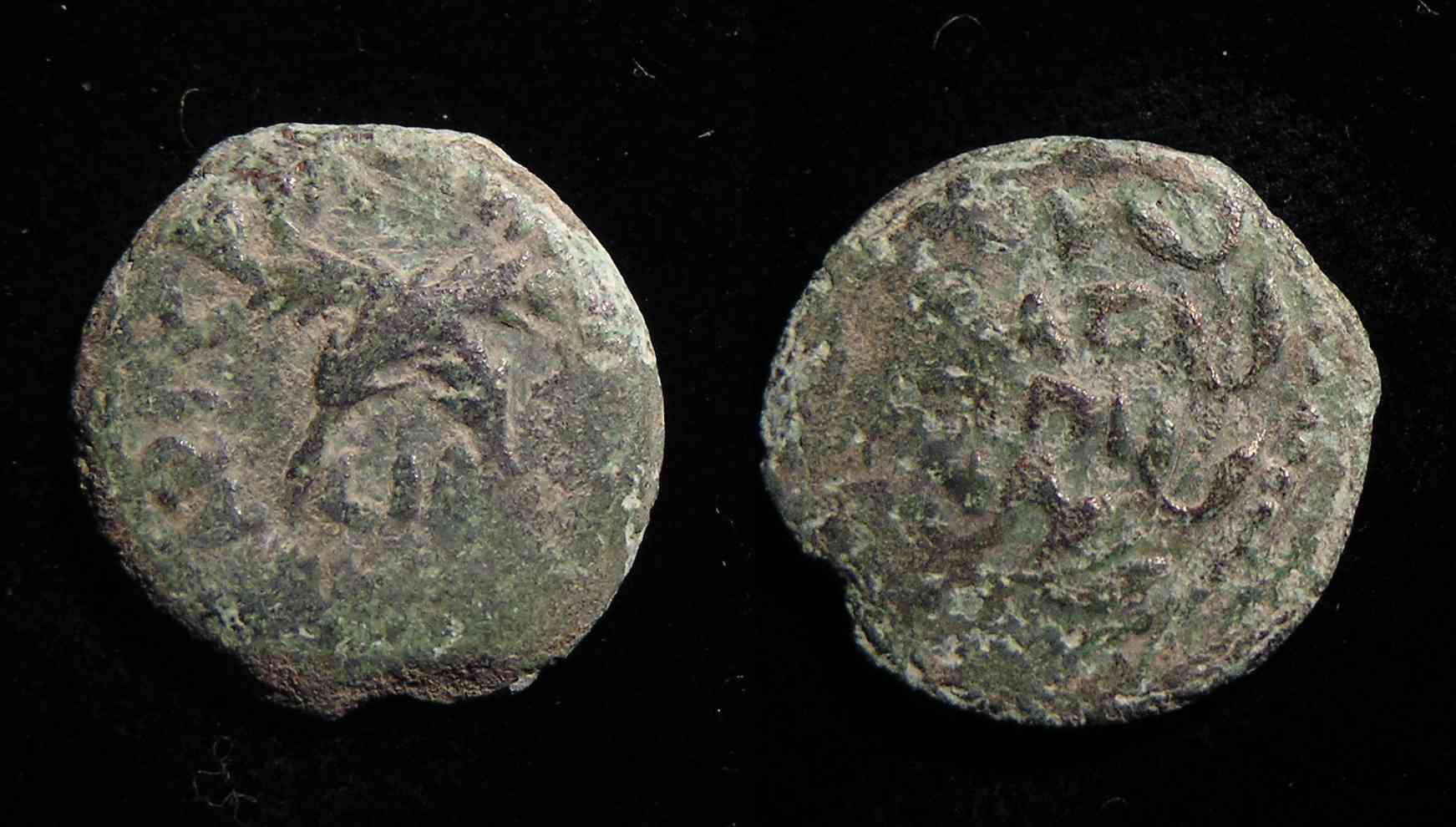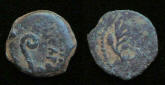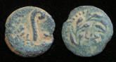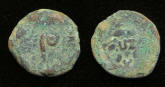 #8096: JEWISH Bronze - 100 BC, WIDOW'S MITE !! of BIBLE FAME !! Historical Context: See above "Historical Context" Obv: Spoke Wheel, Legend around inside