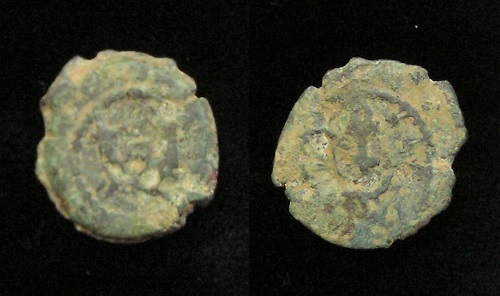 #9615: JEWISH Bronze - 100 BC, WIDOW'S MITE !! of BIBLE FAME !! Historical Context: See above "Historical Context" Obv: Spoke Wheel, Legend around inside