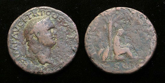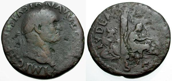 Vespasian, 69 to 79 AD RARE Type - JUDAEA CAPTA Issue Historical Context: See above Obv: Vespasian