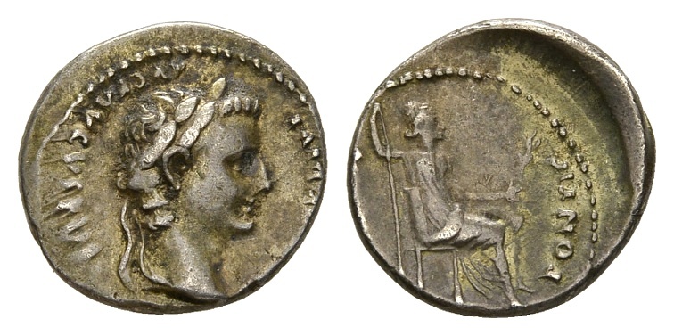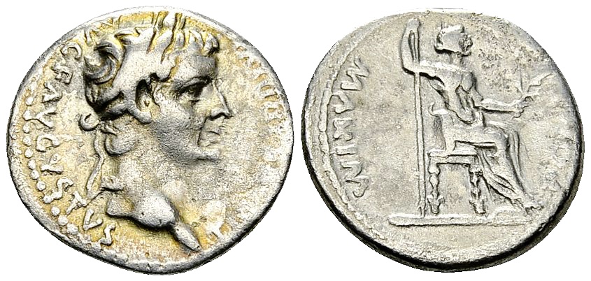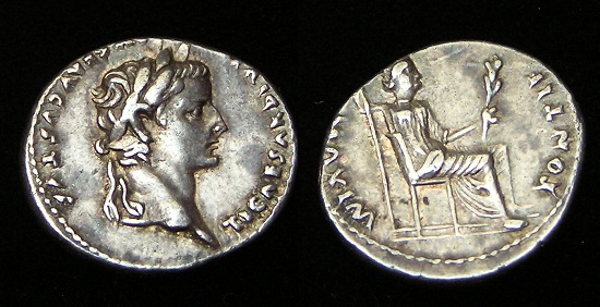 Tiberius, 14 to 37 AD Historical Context: See above Also, this is the coin type that Jesus Christ held when he said "Give unto Caesar that which is Caesar's and give unto the Lord that which is the Lord's" Obv: