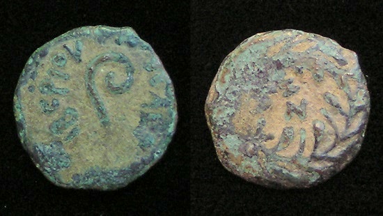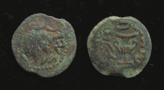 - 100 BC, WIDOW'S MITE !! of BIBLE FAME !! **DOUBLE CORNUCOPIA-TYPE** Historical Context: See above "Historical Context" Attribution: Judea, 100 BC BUY NOW $34.95 plus shipping