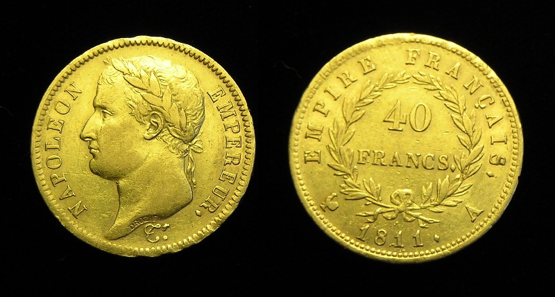 #8767: GOLD Coin - 1811 AD, Napoleon Bonaparte (His Face) Historical Context: See above Obverse: Napoleon in Laurel Wreath