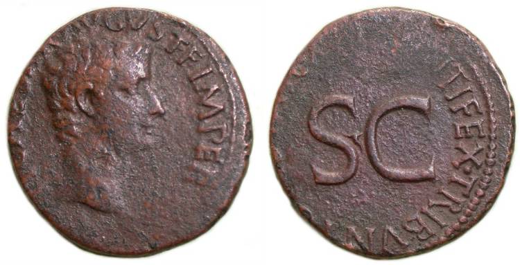 Tiberius, 14 to 37 AD RARE Dynastic Coin!! Historical Context: An interesting dynastic issue. Scarce. These two caesars are not the same persons as the later emperor Nero, and Drusus, the son of Tiberius, of the same names who are listed separately below. Nero and Drusus caesars were eventually accused of plotting against Tiberius and imprisoned. Drusus caesar was starved to death, at the end gnawing on his bedding to survive. Nero caesar was imprisoned on the island of Ponza and also either starved to death or forced to commit suicide. Obv: