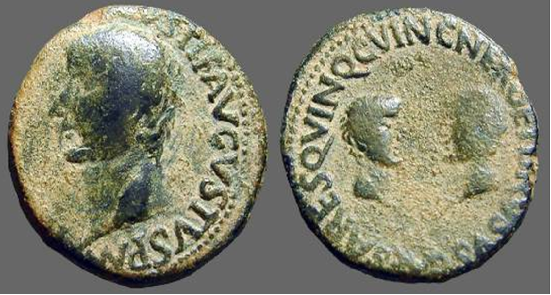 | AUGUSTUS: First Emperor of Imperial Rome 29 BC to 14 AD Historical Context: These coins were minted by the ROMAN EMPIRE during the reign of AUGUSTUS (29 BC – 14 AD). Born as Gaius Julius Octavianus, he was the first Roman emperor. Great nephew of Julius Caesar who adopted him as heir to the throne. He joined Mark Antony and Lepidus in forming the Second Triumvirate to defeat Brutus. Later he opposed Marc Antony (with Cleopatra) and defeated them at the Battle of Actium. For this he received the title of Augustus (emperor) from the Senate and became the ruler of the Roman world in 29 B.C. He set in place much of the Roman Government that allowed them to prosper as an empire for 500 years. Died in AD 14 at the age of 77.