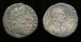 Augustus, 29 BC to 14 AD (Commemorates Battle of Actium - where the forces of Augustus Defeated Marc Antony and Cleopatra) Historical Context: See above This issue (with the P P) is the scarcest of the standard weight Nemausus dupondii. Interestingly, the captive crocodile is still used on the coat of arms of Nimes (formerly Nemausus). Obv: Agrippa (left) and Augustus (right) SOLD $249 plus shipping