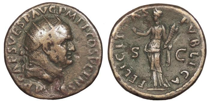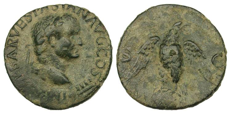#11305: BRONZE Dupondius, Historical Context: See above Obv: Vespasian BUY NOW $239 plus shipping