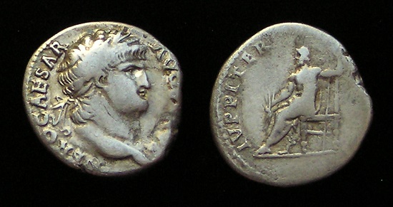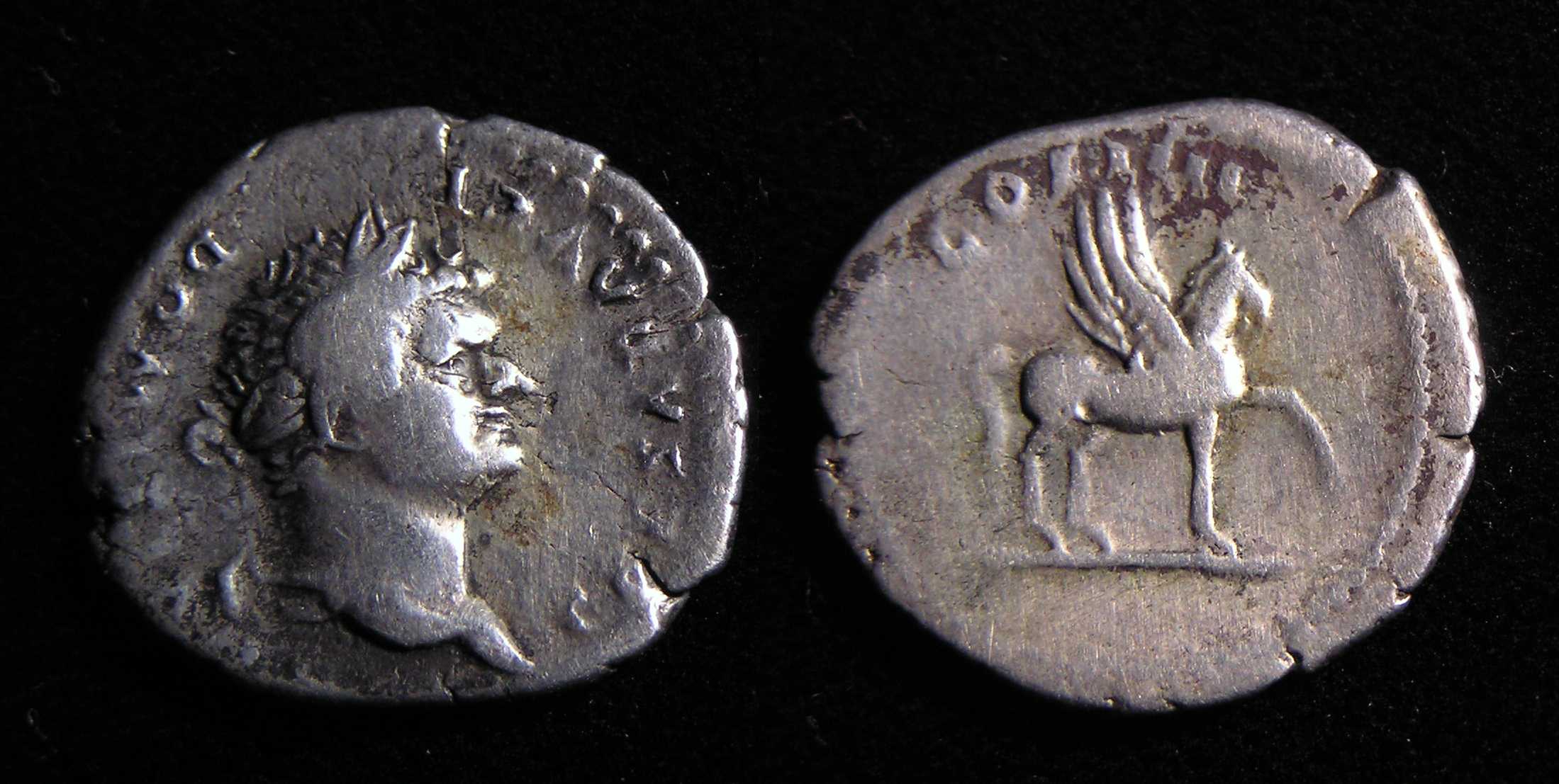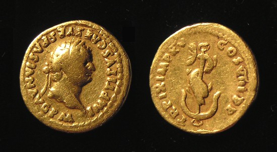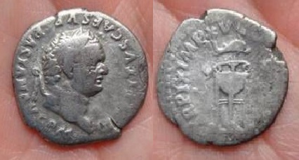 #10879: SILVER Denarius, This coin featured in picture in atricle (center coin - upside down) Historical Context: See above Obv: Vespasian SOLD $199 plus shipping