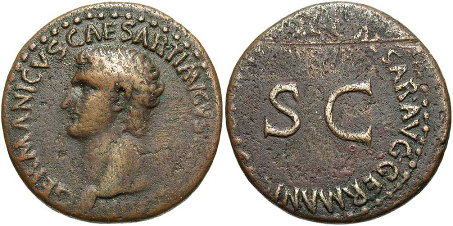 37 to 41AD, Large "SC" Historical Context: See above Obv: Germanicus, Right Facing SOLD $139 plus shipping