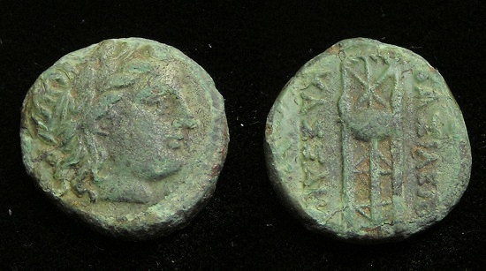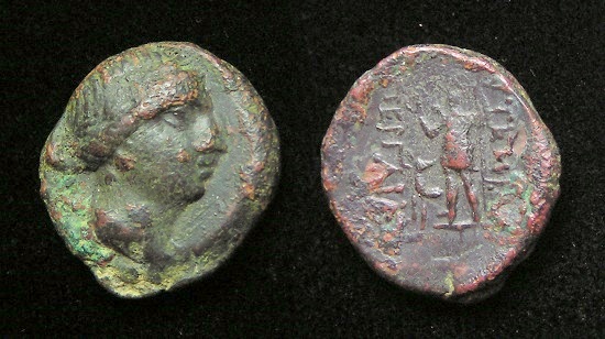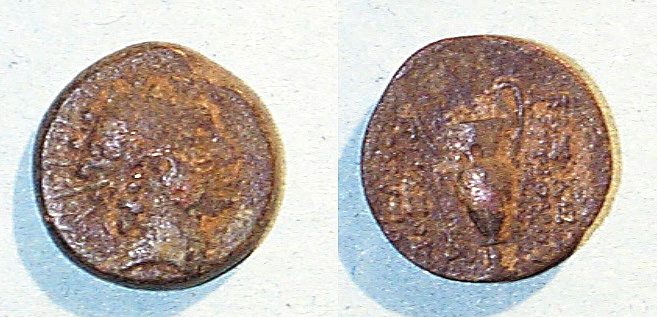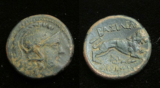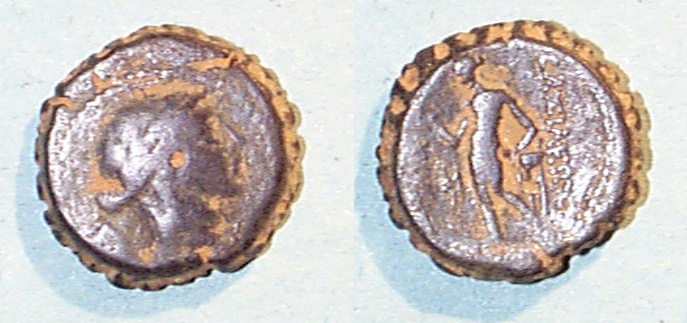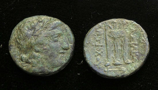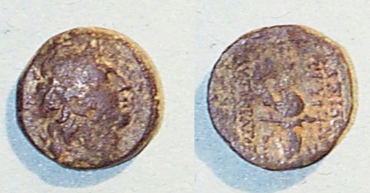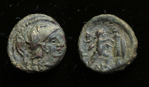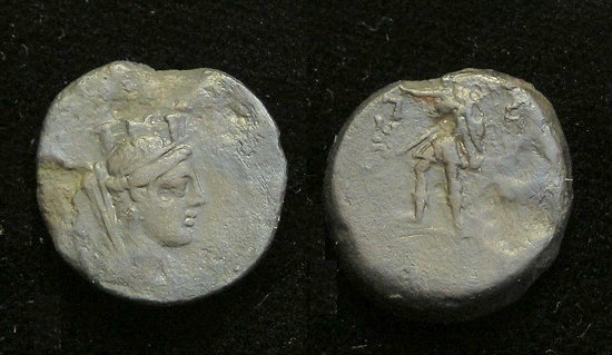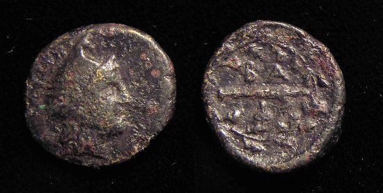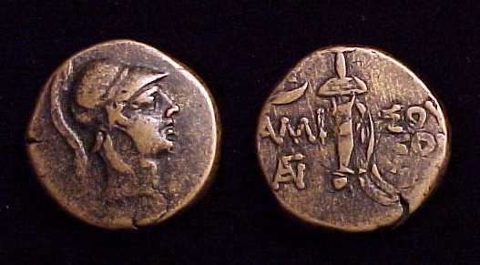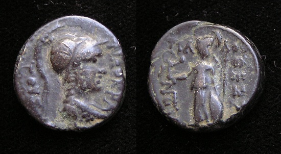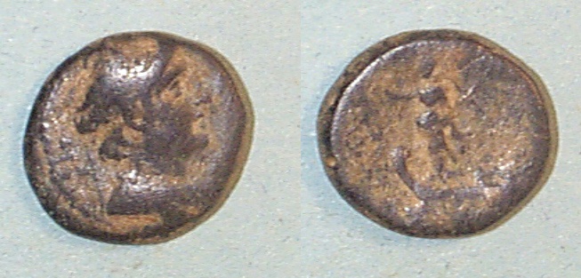 #10712: Small Bronze Coin - AE12 - 2nd Cent BC, Athena / Bow Pergamon, Mysia Historical Context: This coin was minted in Smyrna, Ionia in the 2nd and 1st centuries BC. Obv: Athena SOLD $59.95 plus shipping