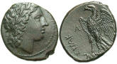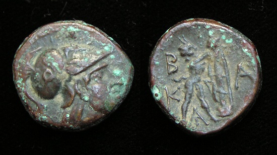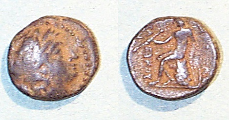 #8078: Bronze Coin - AE16, Macedonia, 220 to 178 BC Perseus in Winged Cap Reign of Philip V Obv: Zeus Perseus wearing Winged Cap BUY NOW $34.95 plus shipping